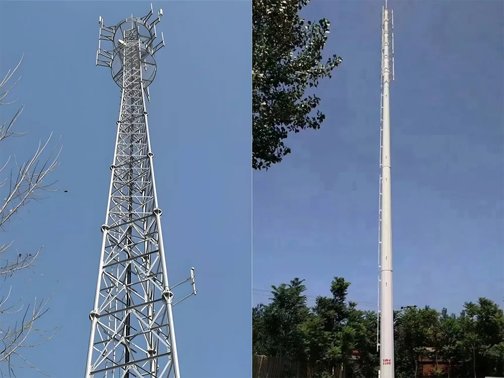 Monopole Towers: May cylindrical tower body, ang mga tower na ito ay nailalarawan sa mababang wind resistance, simple at malinis na anyo, at maliit na footprint. Karaniwang ginagamit ang mga ito sa mga urban center at magagandang lugar kung saan mahalaga ang mga aesthetic na pagsasaalang-alang.