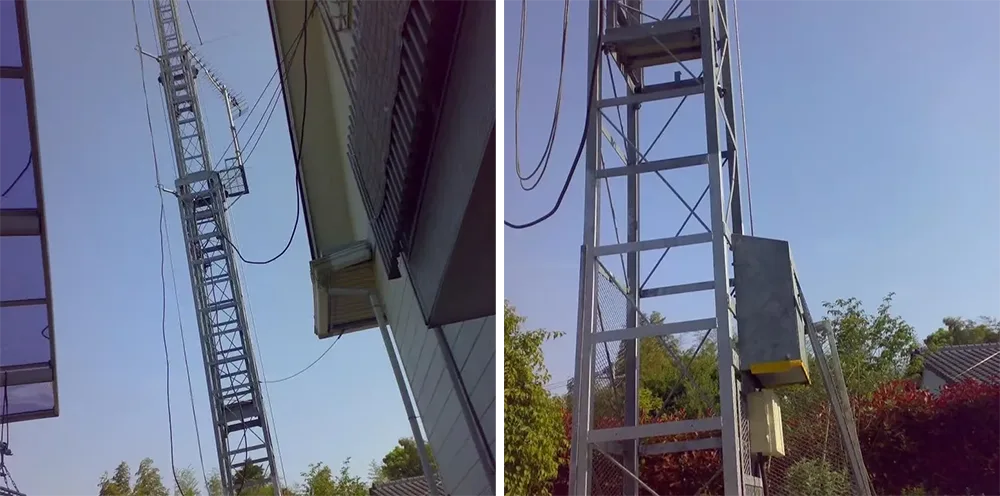 Ang istraktura ng bakal na patayong hagdan na may safety cage |