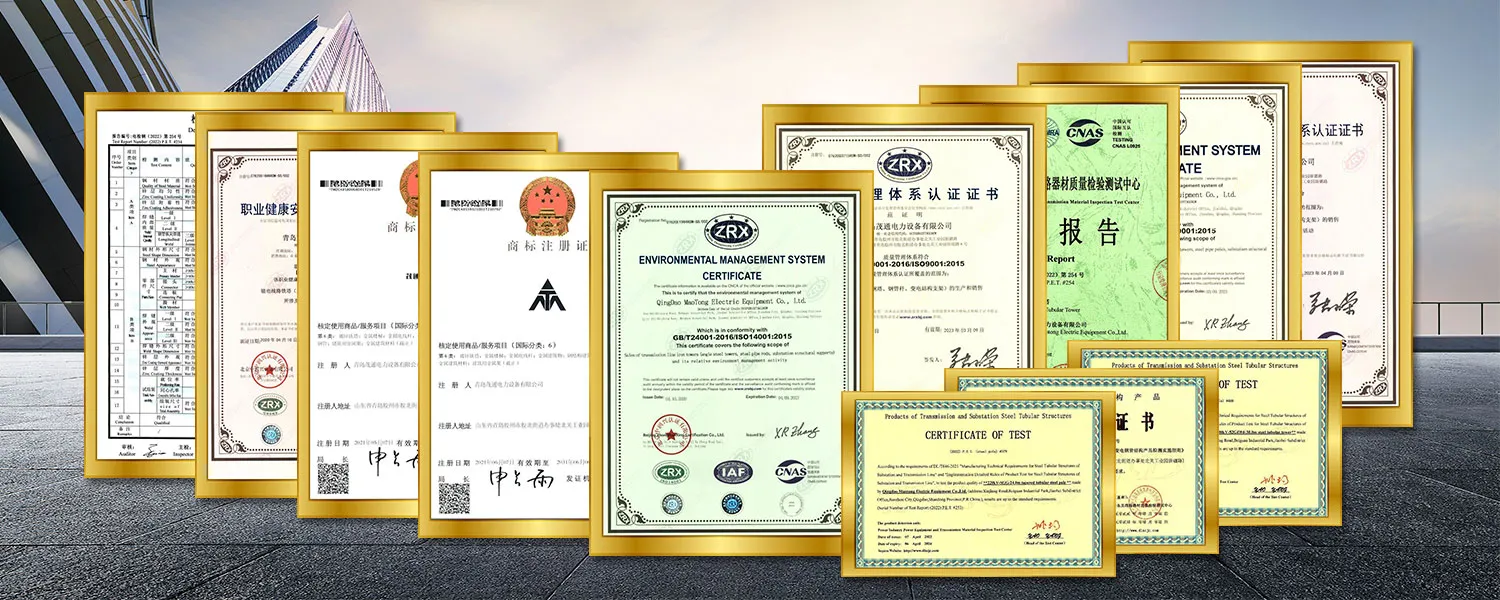 Ang Kumpanya ay may mature na teknolohiya ng produksiyon at pagproseso at perpektong sistema ng katiyakan ng kalidad, na may lisensya sa paggawa ng tower tower tower》, 《National Industrial Product Production Lisensya》, 《220KV Steel Pipe Quality Certificate》 at 《500KV Steel Pipe Tower Certificate》 Inisyu ng Pangkalahatang Pamamahala ng Kalidad ng Kalidad, Inspeksyon at Quarantine.